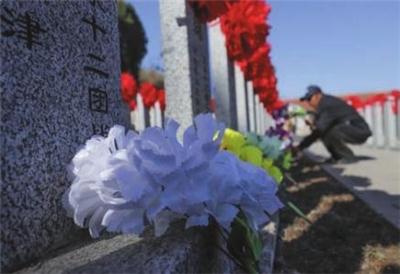 4月2日,河北唐山遵化市甲山革命烈士陵园工作人员替群众向革命烈士献花。 清明将至,河北唐山遵化市甲山革命烈士陵园开展为群众代祭英烈的服务,在新冠肺炎疫情防控期间满足人们缅怀先烈、寄托哀思的愿望。