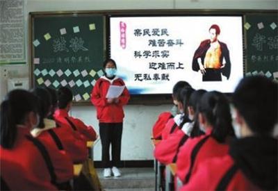 4月2日,在贵州省黔南布依族苗族自治州福泉市第四中学,同学们召开纪念英烈的主题班会。 清明将至,贵州省各地组织学生开展“网上祭英烈”文明祭扫活动,电教老师指导学生通过网络祭奠、留言、观展等方式,了解中国历史与革命烈士的事迹,寄托对英烈的哀思和敬意。