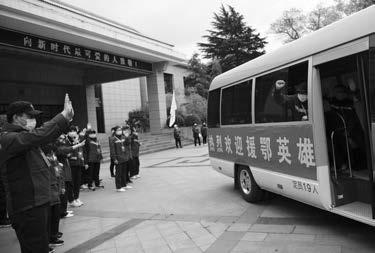 4月3日,乘车踏上归途的宝鸡市三家医院的医疗队队员与“战友”告别。