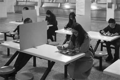 4月3日,湖南省长沙市第一中学的教师在食堂模拟教师就餐环节。