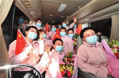 4月6日,我市首批返同的116名支援湖北医疗队队员在指定酒店进行14天集中休养后,从休整酒店回到自己的小家,见到阔别已久的家人。从1月26日开始,我市152名医护人员分5批奔赴湖北武汉、仙桃、潜江、天门,同兄弟团队并肩作战,用精湛的医术、高尚的品德、无私的大爱,坚守在抗击新冠肺炎疫情最前线,出色地完成了救援救治任务。图为部分医疗队员在车上合影留念。 本报记者 于宏 摄