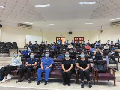 中国援老抗疫医疗专家组6日在首都万象为老挝卫生部及万象各大医院医护人员代表开展了关于新冠疫情防控工作专题培训。几位中国专家现场答疑,进行操作演示,为降低医院院内交叉感染风险提出有效建议。