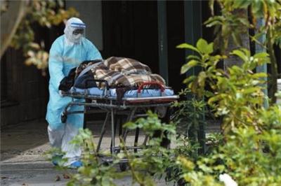 4月12日,在智利首都圣地亚哥,医务人员将出现聚集性疫情的养老院内的人员转移。近日,智利首都圣地亚哥一养老院出现聚集性疫情。