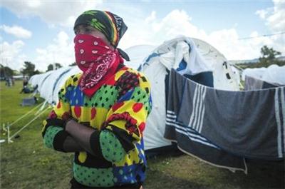 4月15日,在南非比勒陀利亚,一名无家可归者站在临时搭建的帐篷外。