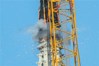 4月17日,在克罗地亚首都萨格勒布,萨格勒布大教堂北塔塔尖被爆破拆除。