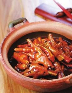 采访中,记者紧跟主厨的脚步,看见了让人垂涎欲滴的砂锅脱骨凤爪。鲜亮的凤爪诱惑着人们的视线,鲜香的味道瞬间刺激着味蕾,空气中弥漫着浓郁的肉香,谁能拒绝凤爪的诱惑?再搭配一碟茴香黄豆,顾客的回头率超高。