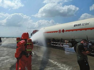 (记者 刘剑)6月30日10时许,在我市境内的省道203线路段,一辆客运车与一辆运载液化天然气的危化品运输车相撞。现场浓烟滚滚,被困在客运车上的数十名乘客不停呼救……别担心,这是由市政府和省公安厅交通警察总队联合主办,市公安局交通警察支队、市公共交通有限责任公司承办,市应急管理局、生态环保局、城市管理局、消防救援支队、卫健委、交通局等单位协办的道路交通事故应急救援联合演练。