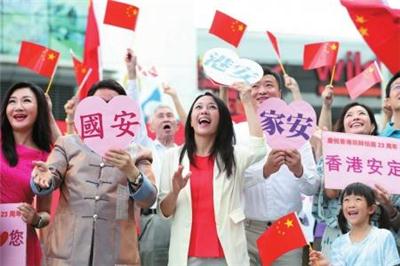 当日,香港市民在太平山顶广场举行国歌快闪活动,庆香港回归,贺国安立法。 本版文图据新华社