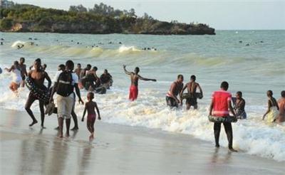 7月5日,人们在坦桑尼亚达累斯萨拉姆的一处海滩上休闲。