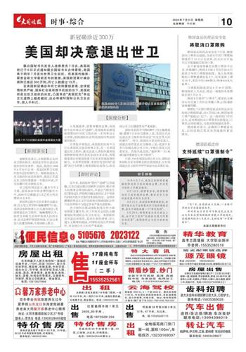 美国却决意退出世卫