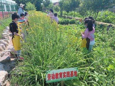 谈到500平方米的劳动教育实践基地的建设,刘红利说,从2017年起学校就开始规划了,师生们逐步将学校东南角的这片荒地开垦出来,后来又打了井,除了黄花,基地里还种了西葫芦、萝卜、油麦菜、黄瓜,这些蔬菜已经上了学生们的餐桌,西红柿、土豆、玉米等长势也很好。学生们看着自己培育的农作物一天天长大,也能体会到劳动的价值。