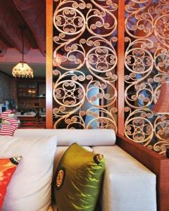 2.雕花隔断。雕花隔断与网格酒柜有异曲同工之处。造价高难清理,每一处都是卫生死角,这两个设计若是出现在同一家庭之中,估计你可能就沦为清洁的机器了,灰头土脸的最终不只有隔断,还有自己。
