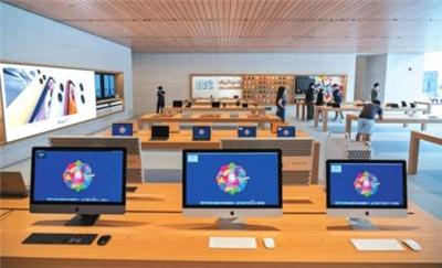 7月17日,苹果三里屯零售店在北京全新亮相。该店是苹果在亚太地区第一家采用集成太阳能电池组的零售店,可以为门店提供电力。店内还提供了供企业家、开发者和其他中小企业客户的商谈室。