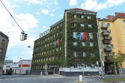 奥地利首都维也纳的市政管理局废物处理办公总部的外墙被种植的绿色植物覆盖,成为了维也纳市建设绿色城市、节能减排的“示例楼”。据介绍,这个外墙项目建立于2010年,每年在夏季为该建筑自然降温、增加湿度,从而减少空调的使用,并可吸收二氧化碳。维也纳市政府提倡市内建筑建设绿色外墙,并提供资金支持。