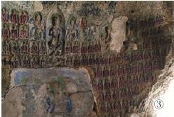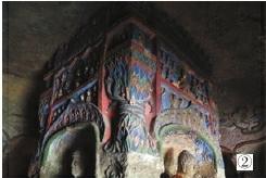 ②西区第1窟,北魏时期的中心塔柱在清代被着色