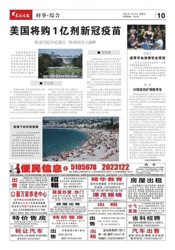 ~~~拟支付近20亿美元 供5000万人接种