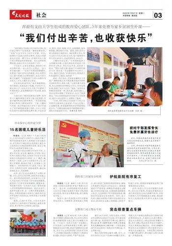 王耀东告诉记者:“为贫困家庭孩子义务辅导功课,让他们拥有和其他孩子同样的学习机会,我们付出辛苦,也收获了快乐。”团队中的王婧,就读于中南财经政法大学,现在是一名金融数学专业的大二学生,她对记者说:“补课结束后,看到孩子们的成绩有了提高,很欣慰。”
