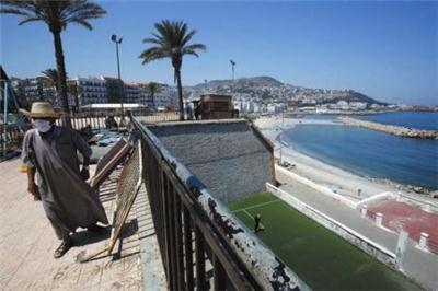 7月27日,阿尔及利亚首都阿尔及尔海滨空旷,游人稀少。
