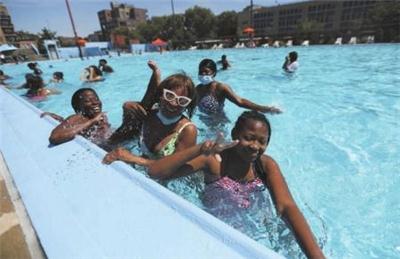 当天,纽约市最高气温超过36摄氏度,刚刚开放的户外泳池成为人们消暑的好去处。