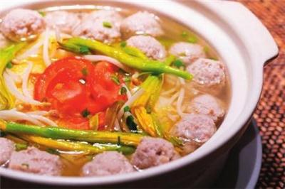 | 云州黄花氽肉圆 厨师:李伟 配料:鲜黄花、五花肉、绿豆芽、西红柿、盐、葱花、香菜、料酒、鸡精、胡椒粉、香油 做法:五花肉改刀肉馅,挤成丸子煮熟备用;鲜黄花、绿豆芽分别氽水备用;将煮丸子的汤调味后倒入锅中,加入丸子、鲜黄花、绿豆芽、西红柿,上火煮10分钟左右入味后,加葱花、香菜、香油即可。 口味:汤汁鲜美、肉丸软糯。 |