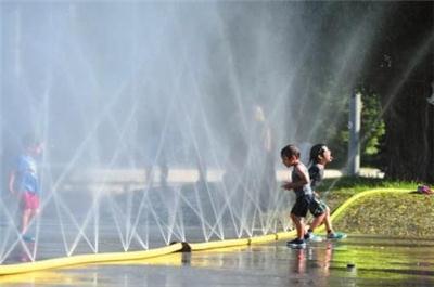 当地时间7月28日,在奥地利维也纳,儿童在一处广场戏水。当日,维也纳市中心的最高气温达到37.2摄氏度,不少市民戏水消暑。