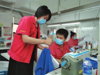 据王月珍介绍,公司现有的60多名员工大多数是下岗工人、农民工,也有残疾人。与她进行手语交流的是去年新录用的聋哑员工王志宇。上个月,王志宇刚参与了防护服制作,因制作数量多、质量高,拿到了5000多元的工资。提到这位员工,王月珍满是自豪地说:“小伙子勤奋敬业,学习能力很强,看几遍就学会了。”