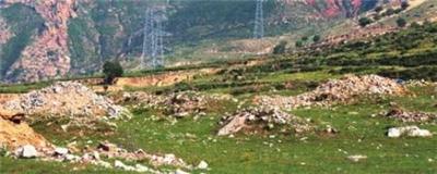 走到柏油路尽头,沿着土路前行可以看到几十座坟冢似的乱石堆,大小相当,显然是人力所为,但是没有石碑,没有树木。道路的另一侧有大量残砖断瓦,清晰地可以看出建筑墙基遗痕,尤其是平整的地面上野草茵茵,默默地说明这里曾经有过建筑群。从遗址规模可以猜测这里应该是一处寺庙遗迹。如果那些乱石堆确实是坟冢,那这处建筑遗址就更可能是寺庙了。