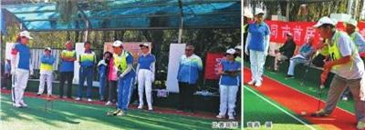 门球比赛是一项益智健身的群众性体育项目,其团体配合竞技的特点、温和有序的比赛规则,在中老年群体中有着广泛的群众基础。昨日,比赛在两块门球场地同时进行,赛场上一群老年人个个精神焕发,挥杆对垒沉着冷静,这些“大龄”选手在比赛中表现出来的心态令人称赞,赛场边叫好声、欢笑声不时响起。