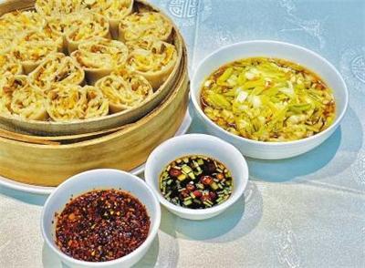 | 黄花莜面 配料:黄花酱、鲜黄花、大同烂腌菜、土豆、胡萝卜、莜面。 做法:用温水和莜面,将和好的莜面擀成面皮;土豆、胡萝卜擦丝,拌入黄花酱,平铺在莜面皮上,并将莜面皮卷成如意卷,用刀切成段摆入笼中蒸熟;鲜黄花焯水、过凉,放入大同烂腌菜,并调入熟胡麻油、生抽、腌葱水,制成蘸汁;蒸好的莜面卷配以蘸汁食用。 特点:莜面酱香,蘸汁清爽。 营养价值:有清火、降“三高”的作用。 |