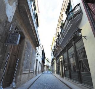 这是9月1日拍摄的空空荡荡的古巴哈瓦那老城区街道。