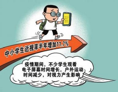 新学期开学前,教育部公布的一项调研结果显示,中小学生近视率半年增加了11.7%。