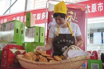 当日,山西省太原市举办农产品展销活动。来自太原市晋源区和清徐县的40余家企业和合作社参加,现场展销特色农产品、手工艺品和地方小吃等。 本版文图据新华社