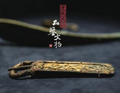 2004年大同交通苑北魏墓群出土。带扣长14厘米、宽4.5厘米。底部鎏银,边框和图案鎏金,边框上铆有排列有序的铜钉,内里的图案为神龙,张牙舞爪,栩栩如生。