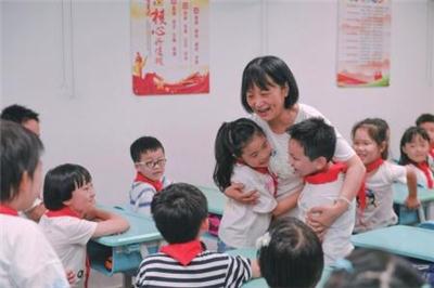 9月9日,在福州市乌山小学,二年级学生在《老师,让我抱抱您》主题班会上拥抱老师。