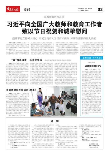 习近平向全国广大教师和教育工作者致以节日祝贺和诚挚慰问