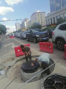 据了解,由于道路上机红砖砌成的窨井井圈比较单薄,导致井圈周边的耐受力非常有限,一旦重车经过,井圈周边很容易破损,窨井盖就容易发出“哐啷、哐啷”的声音。这个声音既惊吓司机,又影响周边市民休息。在此次加固工程中,南环路110多个窨井都将换上“宽帽檐”井圈。通过扩大窨井周边的井圈增大受力面,来减轻对窨井盖的压力,这样既防止窨井盖下沉,也保护了窨井周边的道路,行车也会更舒适。“我们从8月17日开工,预计到国庆节前完工。我们现在改成混凝土井圈加混凝土加固,比以前更加坚固、更加耐用。”市政建设集团维修项目部技术员寇玉说。