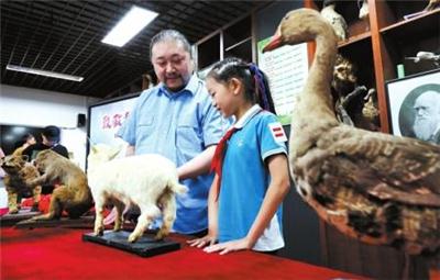 9月10日,上海自然博物馆标本模型制作中心标本师马鸣一在向同学讲解标本修复的方法。
