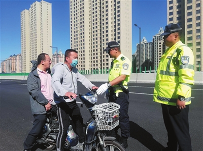 本报讯(记者 刘剑)同煤高架快速干线自通车以来,不少市民将电动车、三轮车等限行车辆开上快速干线。10日上午,记者在现场看到,执勤交警半个小时就拦截了十余辆驶上快速干线的电动车、三轮车。