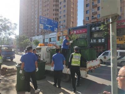 (记者 杨昱郁)针对平城区太阳城小区附近商户尤其是饭店经营者私自占道放置垃圾桶的现象,近日,平城区环境治理监督大队联合平城区环卫处监察大队进行集中整治清理,共先行登记保存35个垃圾桶。