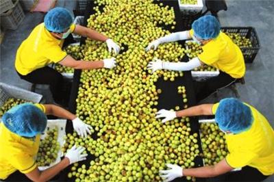 9月18日,山东省滨州市沾化区一家果蔬进出口有限公司工人在分拣冬枣。
