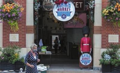 9月21日,一名戴口罩的女子从英国伦敦市中心一处市场前走过。