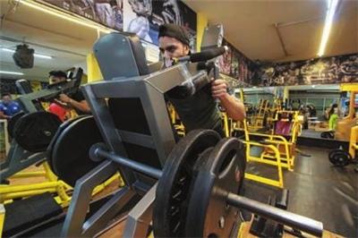 当地时间9月21日,在墨西哥首都墨西哥城的一家健身房内,一名男子戴口罩锻炼身体。
