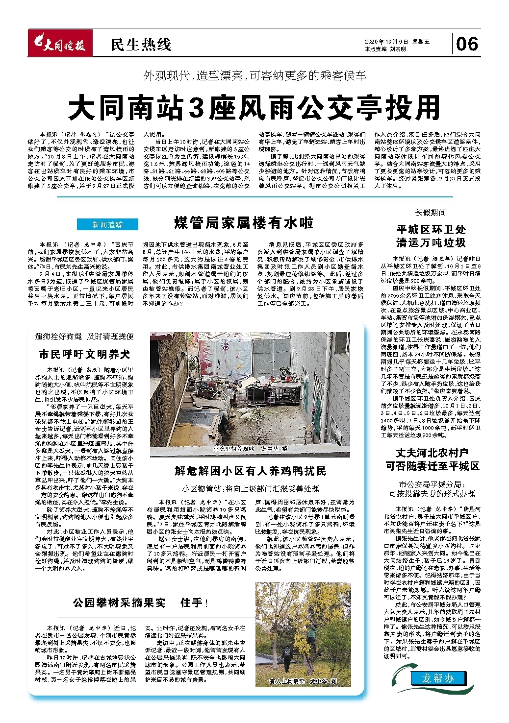 大同南站3座风雨公交亭投用