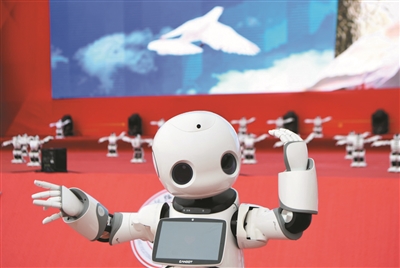 10月12日,智能机器人在重庆智能工程职业学院揭牌暨华为(永川)联合技术创新中心投用仪式上进行舞蹈表演。