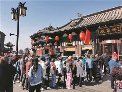 除了婚宴,假期中由于家庭团聚或是朋友聚会的增多,也使得许多饭店一座难求。10月5日中午,记者在龙聚祥烧麦馆鼓楼店门前看到,等座的顾客已排到了马路上。正在排队的北京游客陈先生告诉记者,他听说这里的烧麦很正宗,是专门过来品尝的,已经排了快两个小时了。据饭店的服务员说,放假这几天,每天不论是中午还是晚上,顾客都很多,翻台是很平常的事。