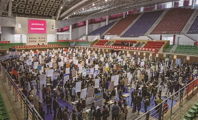本次招聘会涵盖金融、教育、建筑、能源、旅游、互联网等多个领域。该校相关负责人表示,通过举行招聘会与用人单位进行深入交流,及时发现问题,补足短板,进一步推动校企合作,同向同步为学生与社会打造良好的就业环境。图为招聘会现场。