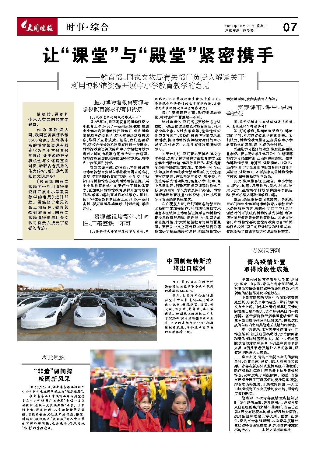~~~——教育部、国家文物局有关部门负责人解读关于利用博物馆资源开展中小学教育教学的意见