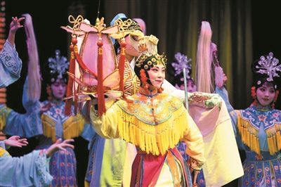 10月24日,评剧演员在河北省石家庄丝弦剧院表演评剧《宝莲灯》。