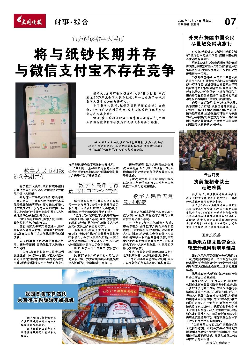 将与纸钞长期并存 与微信支付宝不存在竞争