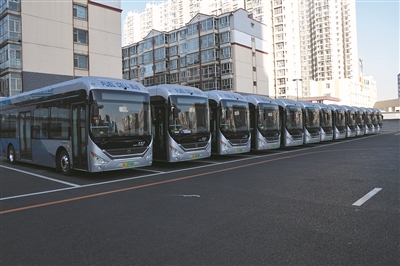 每天清晨,位于恒安新区的公交六分公司车场,一辆辆准备投入运营的新能源公交车形成一道独特的风景线。新能源公交车在运行过程中不排放污染气体,有效缓解了城市环境污染问题;新能源公交车操作简单,大大降低驾驶员的工作强度,有利于行车安全;低噪音的新能源公交车,为市民提供了舒适的乘车环境。该车场也是目前我市规模最大、功能设施最齐全的公交设施场站,所属的11条公交线路,于2020年1月份率先告别了燃气车时代,全部替换为新能源公交车,成为我市“生态优先、绿色发展”理念的新名片。